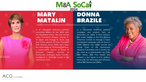 Learn more about our keynote speakers, Mary Matalin and Donna Brazile, who will take the stage on Tuesday, September 17 at 12pm for a very timely discussion on political insights and forecasts for the year ahead. Reserve your ticket today for this highly-anticipated three-day dealmaking conference!