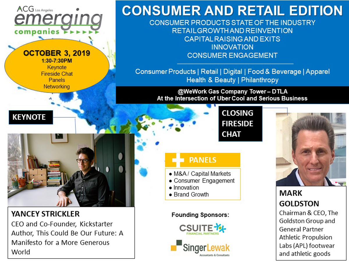 Speaker: Mark Goldston, Chairman and CEO, The Goldston Group. He is also the majority owner, General Partner, and patented inventor of Athletic Propulsion Labs (APL) an athletic and footwear company based in Los Angeles.