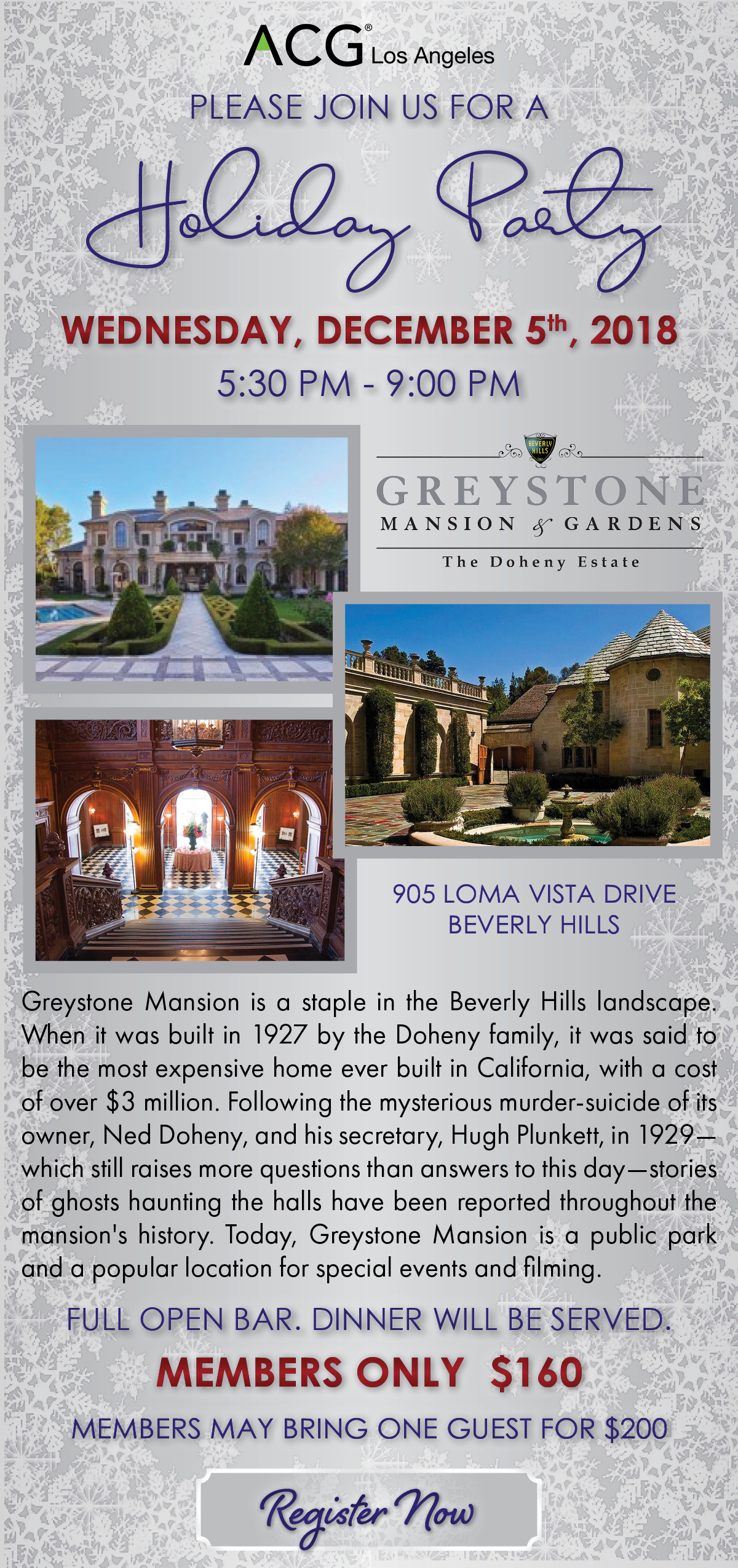 ACGLA - Holiday Party at Greystone Mansion (Doheny Estate) 12/5/18 MEMBERS ONLY