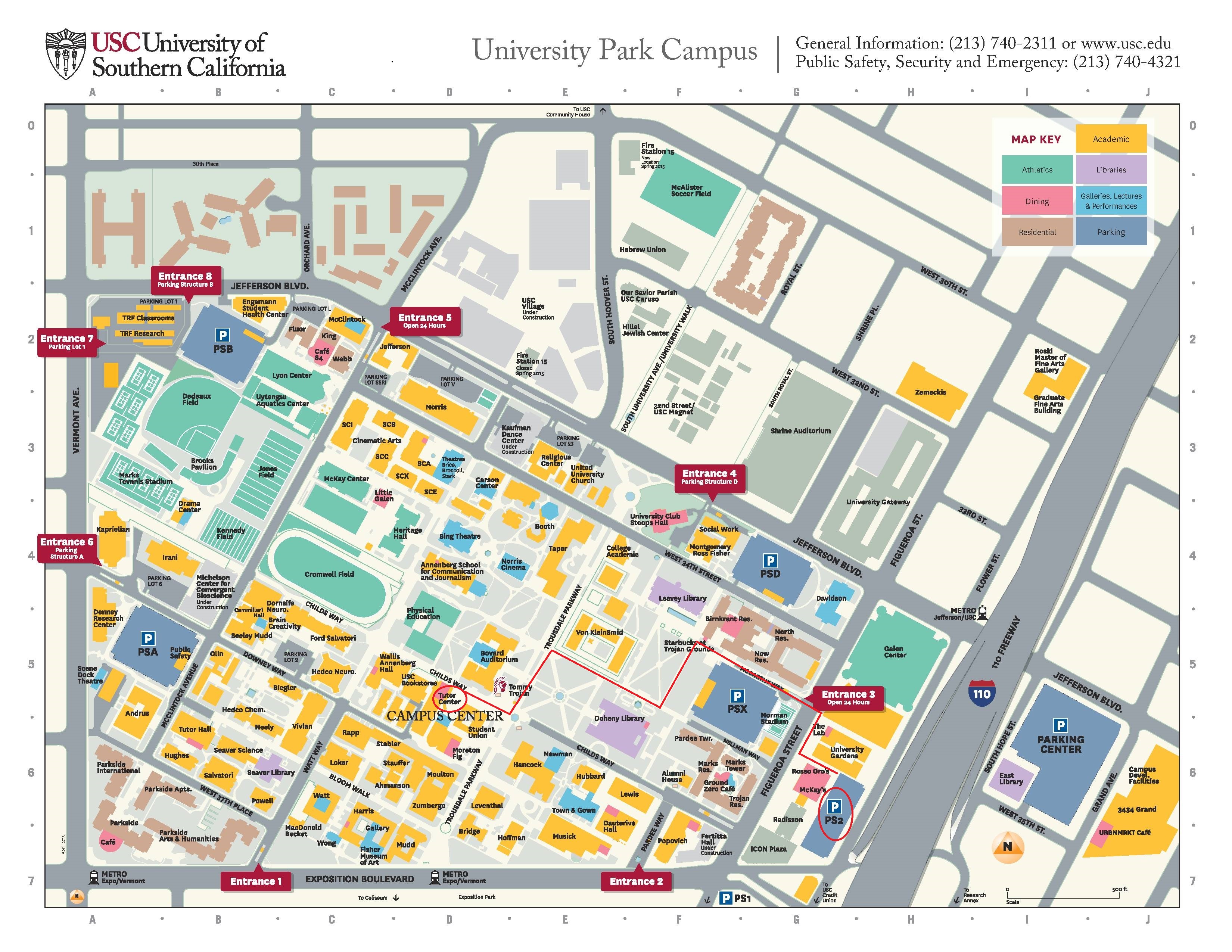 There is a bit of a walk to get to the middle of campus and the Tudor Campus Center . The Tudor Center is between the bookstore and the Tommy Trojan statue. Women, wear comfortable walking shoes 😊 We are holding the Symposium in the Ballroom downstairs.
