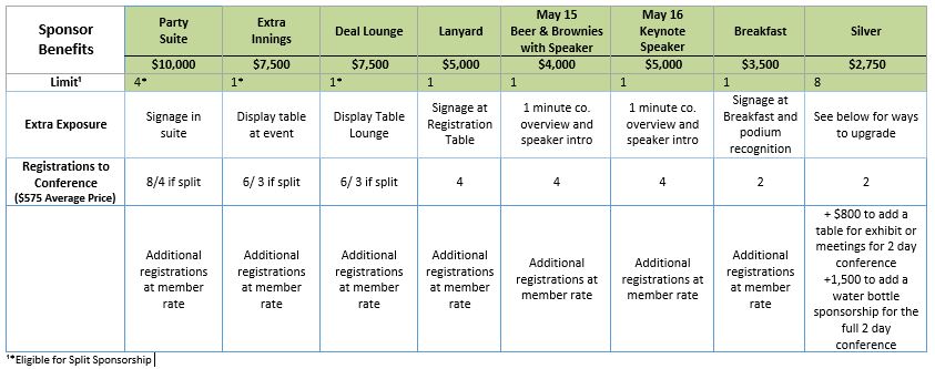 - Complimentary meeting registration (see chart below for details for each level) This is an average $575 value per attendee