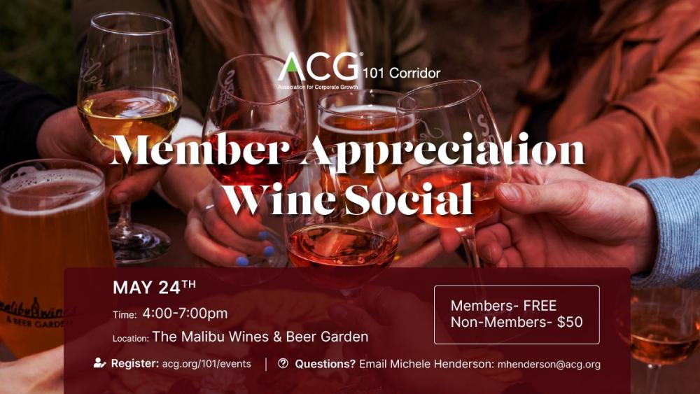 Join us for our Member Appreciation Wine Social event which will be held on May 24th, 2023.