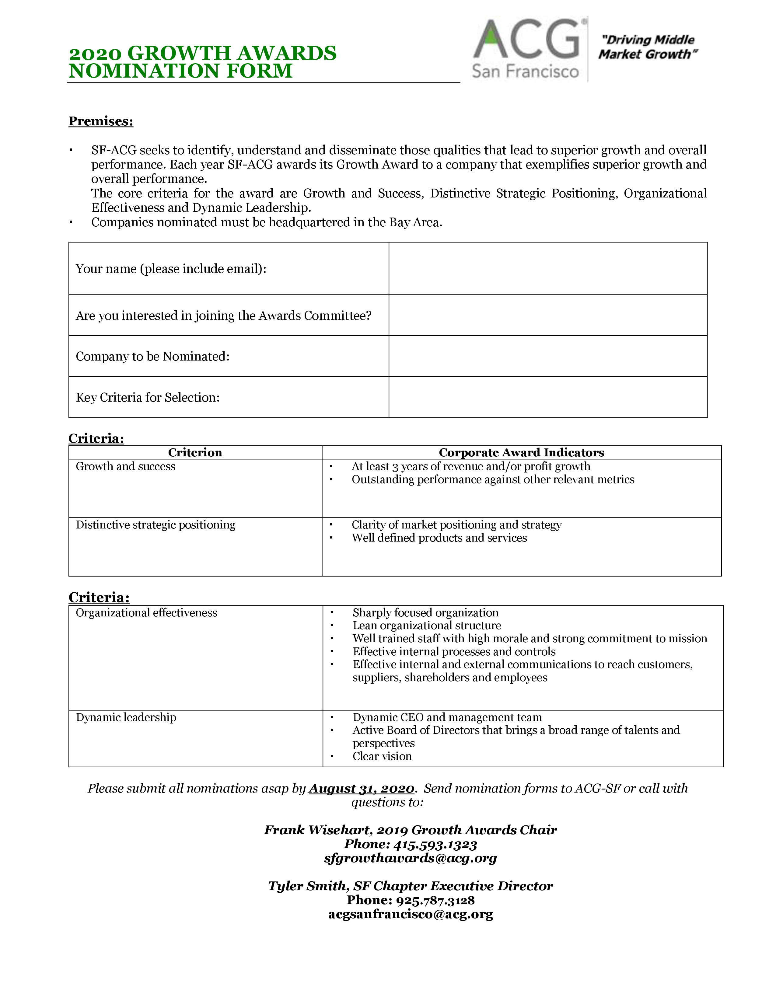 Founded in 1954, ACG is the premier M&A deal-making community with a mission of driving middle-market growth. ACG’s global network operates within 61 local markets worldwide and comprises more than 100,000 middle market professionals who invest in, own and advise growing companies. Learn more about ACG and becoming a member at www.acg.org.
