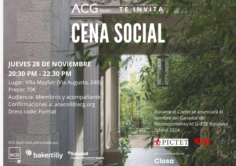 ACG Spain te invita a una noche especial de networking nuestra Cena Social anual.