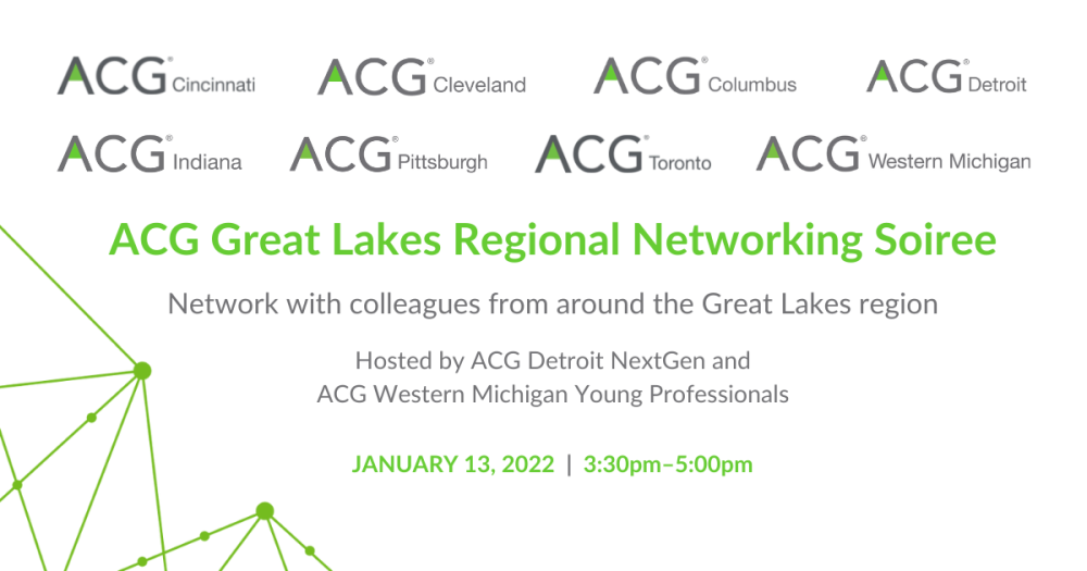 Join the Young ACG members from the Great Lakes Chapters for another virtual winter networking meet-up! Co-hosted by ACG Detroit's NextGen & ACG Western Michigan's Young Professionals, this event is open to everyone.